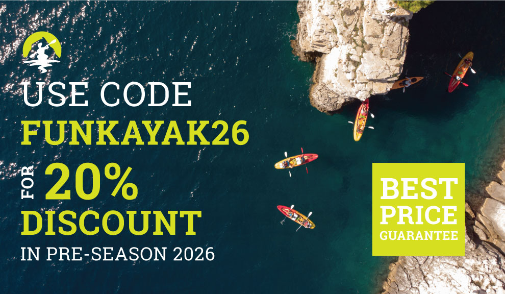 For last minute booking simply give us a Call and we’ll do our best to accommodate you.12.Can I pay cash or is it all by credit card? As we don't accept cards your cash payment is more than welcome.13.Are private kayak tours available? Yes, we often run private tours for groups up to 70 people looking for a unique way to spend quality time with friends or family. To inquire about booking a private tour, please send us an Email.14.Where is the meeting point for the kayaking tours?The meeting point is at Valovine Beach, and our guides will be waiting for you there. If you have any trouble finding us, please call us at +385 977 636 590.15.Is there parking available? Yes, there is plenty of unrestricted free parking and payment parking as well.16.How early we must arrive prior to departure? 20 minutes will give us plenty of time to get you checked-in and get you ready for departure. 17.What if we arrive late? Can you wait for us? If the other kayakers are ready, we have to respect their time and cannot delay their departure more than 5 minutes. If you're running late, you can try to contact the crew at +385 977 636 590. Depending on the circumstances we may be able to wait for you.18.Are there restrooms at the launch site? Yes, we strongly recommend that you use the land base facilities near the launch site prior to getting on the kayak. You will have access to clean toilet facilities before departure.19.What language do you speak on the tours? The tours are conducted in English. Don't worry, if English is not your first language, your guide is very expressive. 20.How should we prepare ourselves and what should we bring? Bring swimsuit, sun hat, sunscreen, beach towel, water shoes and positive vibe! The rest we'll take care for you.21.What equipment do you provide?We'll provide everything you'll need to have a fantastic experience. This includes: easy to use kayaks, paddles, inflatable vests, dry bags, water, and a fun, knowledgeable guides.22.What type of kayaks do you use? We primarily use tandem kayaks on our tours due to their stability. On most tours guests share a tandem kayak however a limited number of singles are available upon request.23.Can we stow anything on the kayaks? Yes, we provide a dry containers for your personal belongings, but there is a limited amount of room, so please only bring what you need. You can leave your back packs in our car for safe keeping.24.Are there drinks available on the tours? Yes, we offer bottle of water on all of our tours.25.Can we bring our own food? You're free to bring anything you would like to eat or drink as long as the amount is small and personal.26.Do we get to drink beer during the kayak tour?We do not allow alcoholic beverages on the tour. We have a priority to keep you safe on our tours and alcohol can take away from the paddling experience. Instead, save the drinking for after the tour.27.Will we get seasick? Not likely. We stay very close to the coast and in the summer months the sea is usually very calm. However, kayaks are in motion most of the time. The last thing we want is for anyone to get sick so if the weather is too rough, we'll have to postpone the tour. 28.Can I bring my camera on my snorkeling tour?Yes, you can bring your camera. But we would recommend you to bring waterproof one, so it won't get ruined easily.29.Do you offer photos from the kayaking tour?Our guides normally have a waterproof camera and can take photos during the tour. If you're interested in photos please check with your tour guide how to get them . Kindly note that photos cannot be guaranteed. Our customers safety and wellbeing is our first priority, and therefore it can happen that the guide have to focus on helping the kayakers in the water instead of taking photos.30.What is your season, when do you run your tours? Our season starts in April and runs through October. During the off-peak, we are subject to passenger demand and sea conditions. During the peak (July & August) we run up to 3 tours a day.31.Do you have a weather cancellation policy? Activity may be canceled due to severe weather. The activity usually runs in light rain and other moderate weather conditions. We may cancel the activity up to an hour before the start time in the event of severe or unsafe weather conditions. If we cancel the activity, you'll be allowed to reschedule the tour (subject to availability). If rescheduling isn't possible, you'll be refunded.32.What is your cancellation policy? If you do not show up for your kayak tour, you forfeit your money and there are no refunds. Within 48 hours of the tour departure time, no refund is available. If you call up to 48 hours in advance and need to cancel or move your tour, we'll do our best to reschedule your tour date and time. If we're unable to find an appropriate date and time for you, 90% will be refunded. If the minimum number of kayakers (which is 4) are not registered, the tour it could be canceled. In such cases, we'll contact you to reschedule your tour or refund your money. Please check our Terms & Conditions for more details. If you have any questions that are not answered here, please contact us.